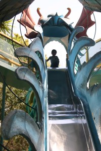 The storybook sets  my son enjoys the most are running through Alice in Wonderland’s rabbit hole, climbing to the crow’s nest in Peter Pan’s Jolly Roger Pirate Ship, exploring the Old West Junction, and sliding (over and over) down the huge Dragon Slide.