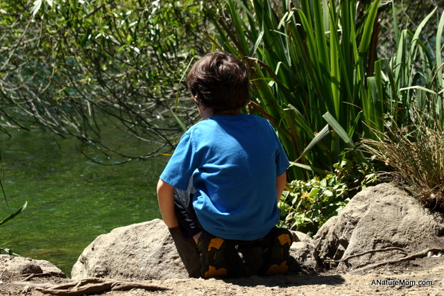 Thw picture of your son crouching on the rock looking in the water is great 🙂