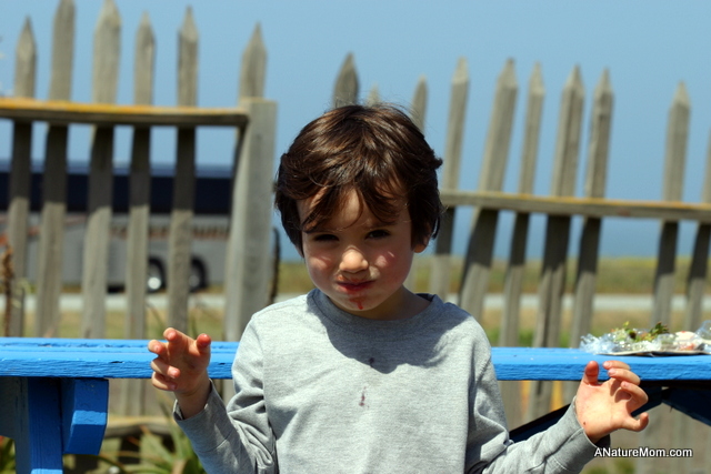 What’s not to love about this place?  The location of the patches varies each year, but they’re always located right off Highway 1, with gorgeous views of the Pacific Ocean.  Last year, the berry patch was on a bluff right above the ocean!  Gorgeous.  This year, it was on the other side of the highway, but still with beautiful scenery.  Additional benefit?  Organic berries!  And I love the payment system here.  The payment box is open, so we, the customers, weigh the berries ourselves, calculate what we owe, and put our money into the box, without anyone watching over us.  Gotta love the trust!
