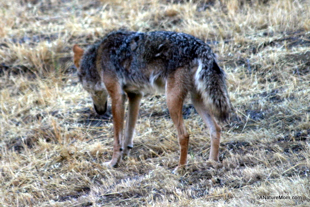 Here are my pre-caffeine photos of the coyote hunting for his breakfast on the hill behind our home…