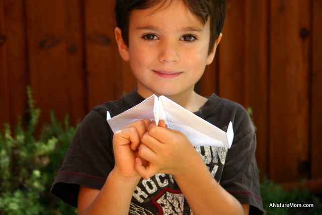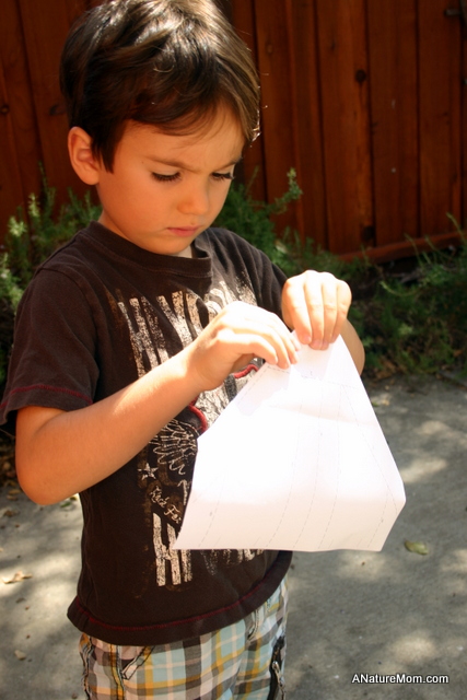 I found a fun website that offers a bunch of different paper airplane designs available for free download (www.funpaperairplanes.com). The site offers fifteen different designs, rated by difficulty level (beginner, intermediate, advanced, novelty). Each design provides a template (ready for folding, and cutting, if necessary) and directions. We decided to try out the “Condor”, a design from the beginner category.