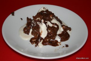 Step 3:  Pour the melted chocolate (lava… melted rock).  Explain to your child that this is like lava flowing down the sides of the volcano.