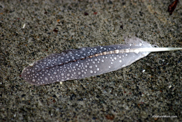 It rained during the night. My son found this feather in the backyard this morning and asked me to take a photo of it. Things are dry and calm now, but it will probably be raining for trick-or-treating tonight. Do ninjas wear rain coats?