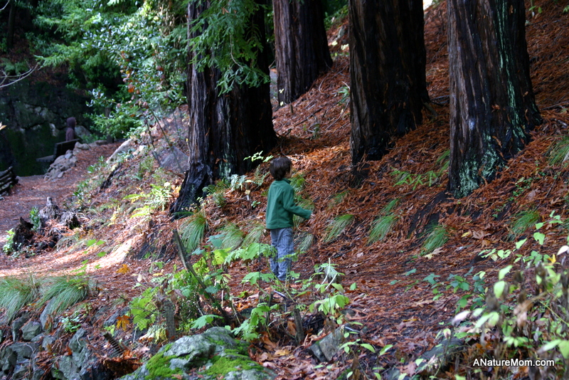 Your child looks so small against the background of those mighty trees.