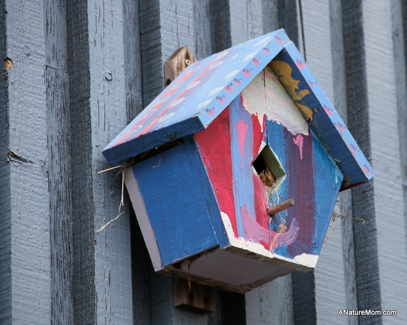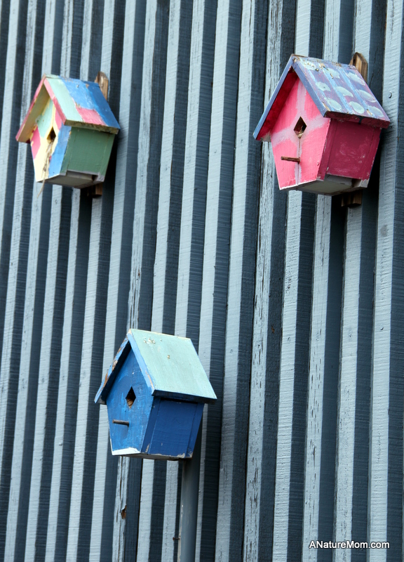 I haven’t painted birdhouses with my son yet. It’s on our to-do list! I’m inspired by these I found hanging at a local school.