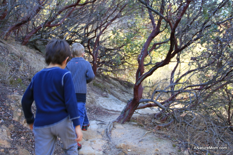 The Chaparral Loop Trail at Black Diamond Mines Regional Preserve in Antioch is a great trail to hike with kids. First, the trail starts at the Greathouse Visitor Center, which, alone would be a great destination for a family with kids. The visitor center is located within the mountain! After exploring the visitor center for a bit, head out onto the trail. The trail is relatively short, at about a mile in length. Though be warned… there is a lot of climbing during the first half. It didn’t seem to bother my son and his friend, however, who handled the uphill section as if it were a trail run! What will you see along the way? Gorgeous views of the surrounding valley and the backside (to us) of Mount Diablo, a forest of manzanita, sandstone rock formations, hidden caves, mine openings (gated for safety), and the entrance to the Hazel-Atlas Mine (now closed for the winter season).